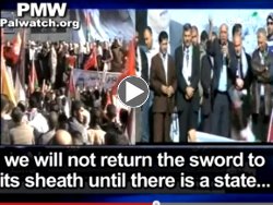 : "We say again: We of course praise our people's resolve in Gaza. We praise and salute every hand that launched a rocket at Israel from Gaza, and every hand that threw a stone at the Israeli side in the West Bank. And here, when signing agreements, it must not be done as if the battle was between Israel and Hamas only. The battle was [between Israel] and all the Palestinians."